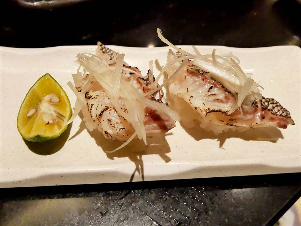 あぶりでサーモンの脂がジュワーっとあふれてるねん。