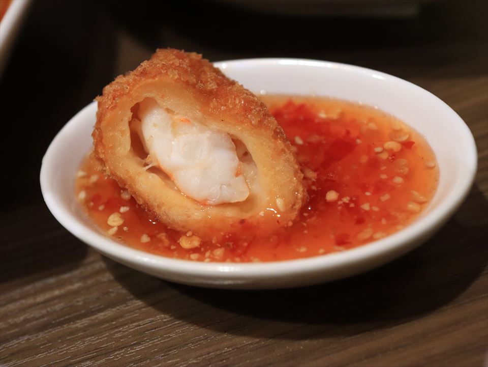 海老をすり身で包んであって、食感の違う海老が味わえるねん。