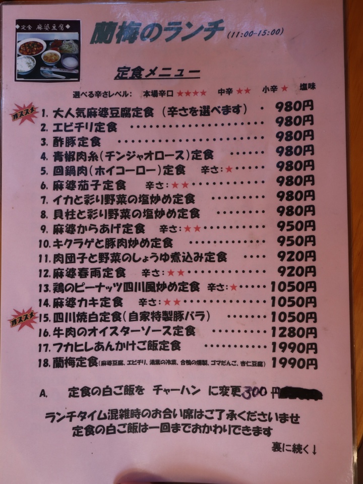 泉佐野 中華 四川料理 蘭梅 (ランメイ)