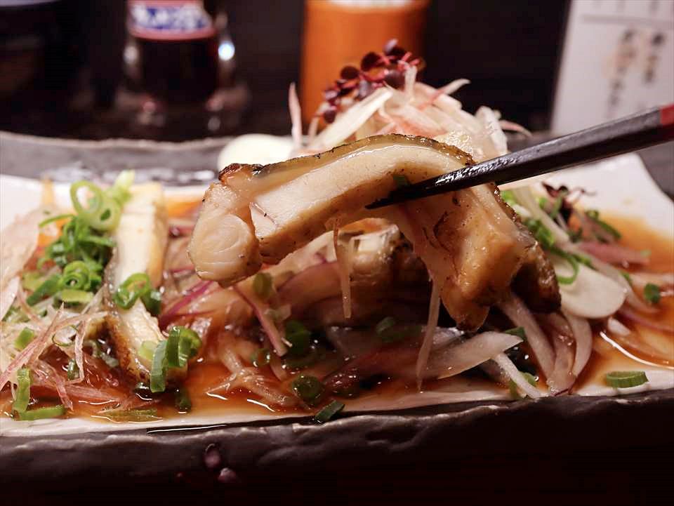 生にんにくスライスがたっぷり、ウツボとあうねん。