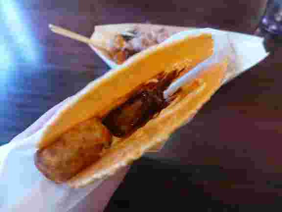 パリパリのせんべいと、ふわふわのたこ焼きがうまっ。