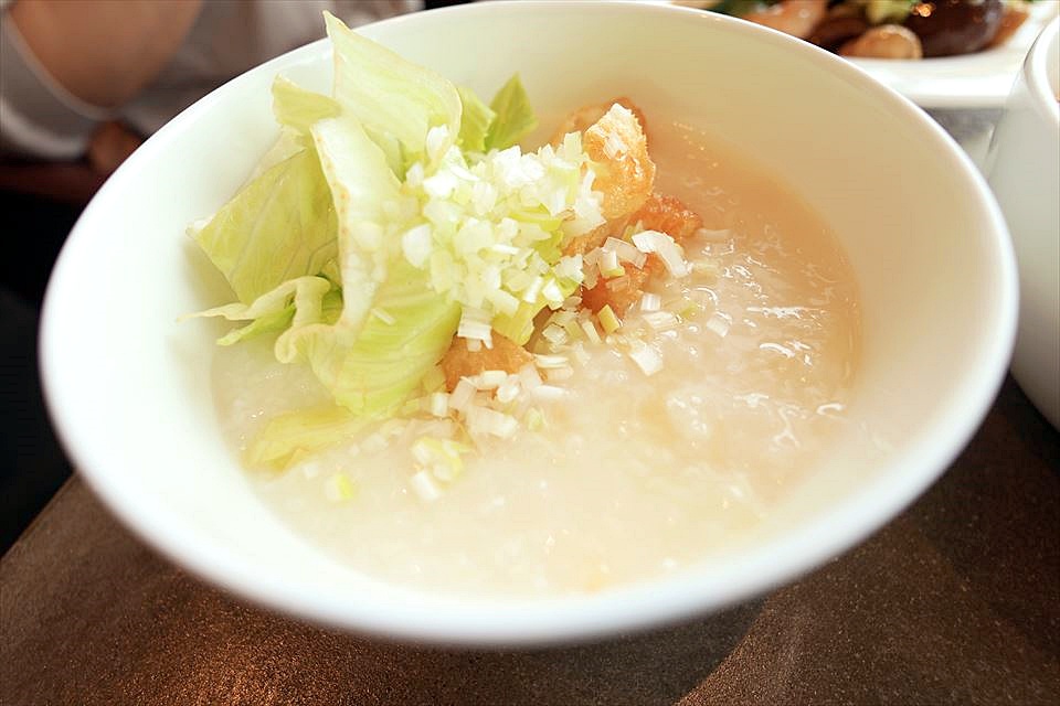レタスがシャキシャキ、カリカリの揚げたのんが香ばしくて絶品なお粥。
