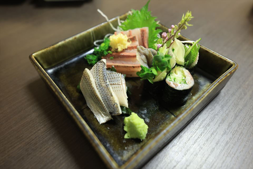 鰯の脂の旨味と海苔の風味、野菜の食感が楽しめるねん。