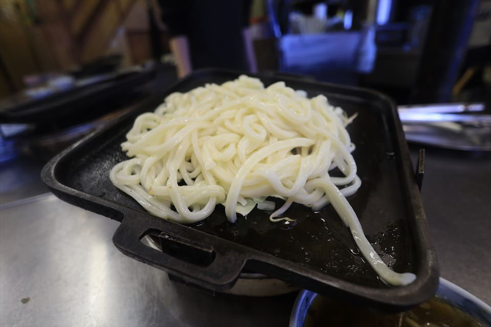 麺用の鉄板に交換して、熱々の鉄板でうどんと