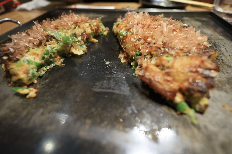 かつおぶしがかかってて、醤油味のねぎ焼き。