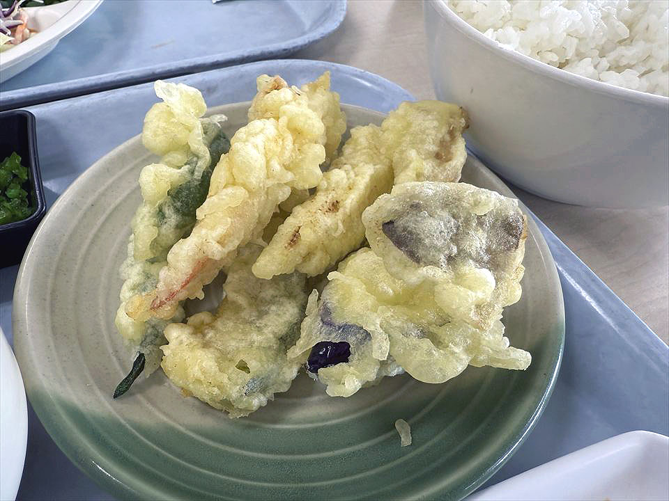 天ぷらは、かぼちゃ、茄子、海老、オクラ。