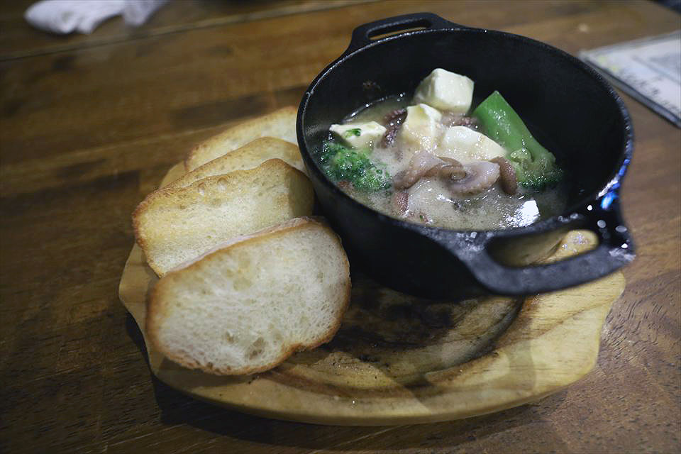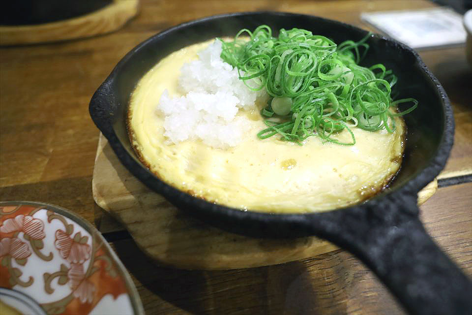 ここの明石焼はたこ焼きみたいな形やなく、スキレットで出てくるねん。