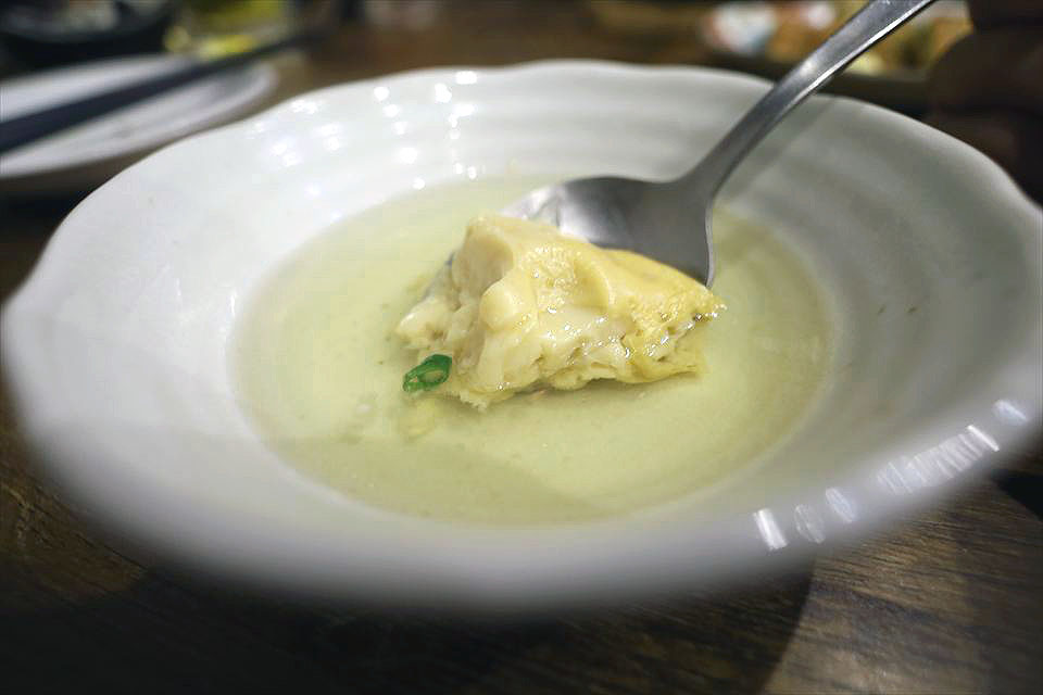 スプーンですくってお出汁をつけて食べるねんけど、これめっちゃ美味い!