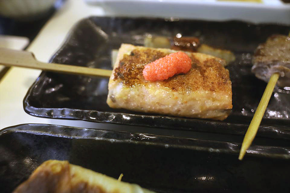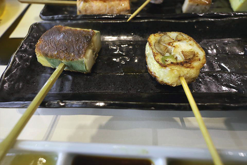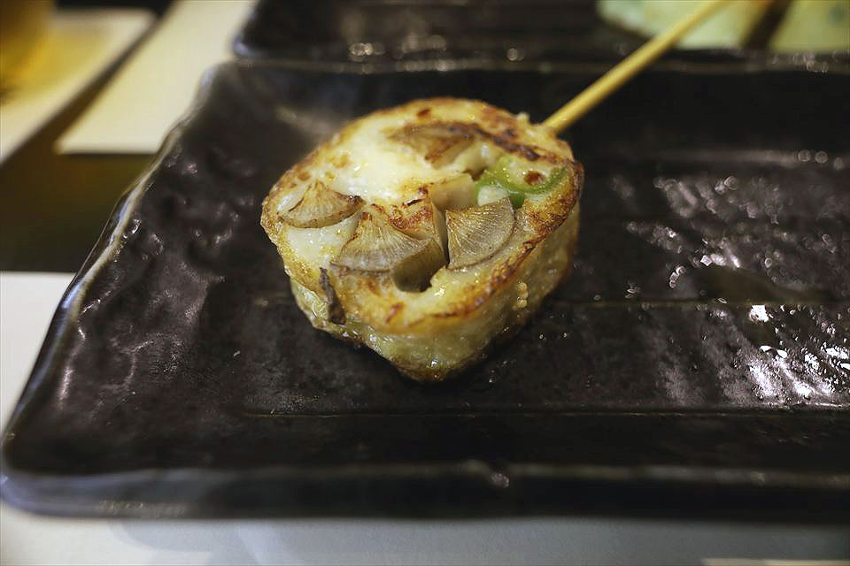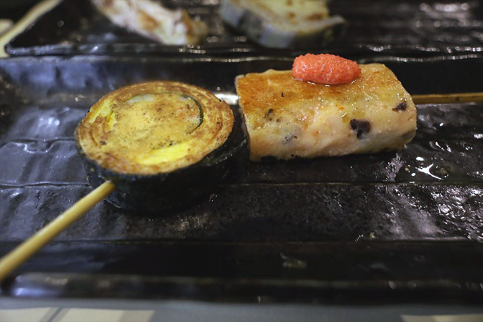 大葉巻は、子持ち昆布と紫蘇、はんぺんを湯葉で巻いてあるねん。