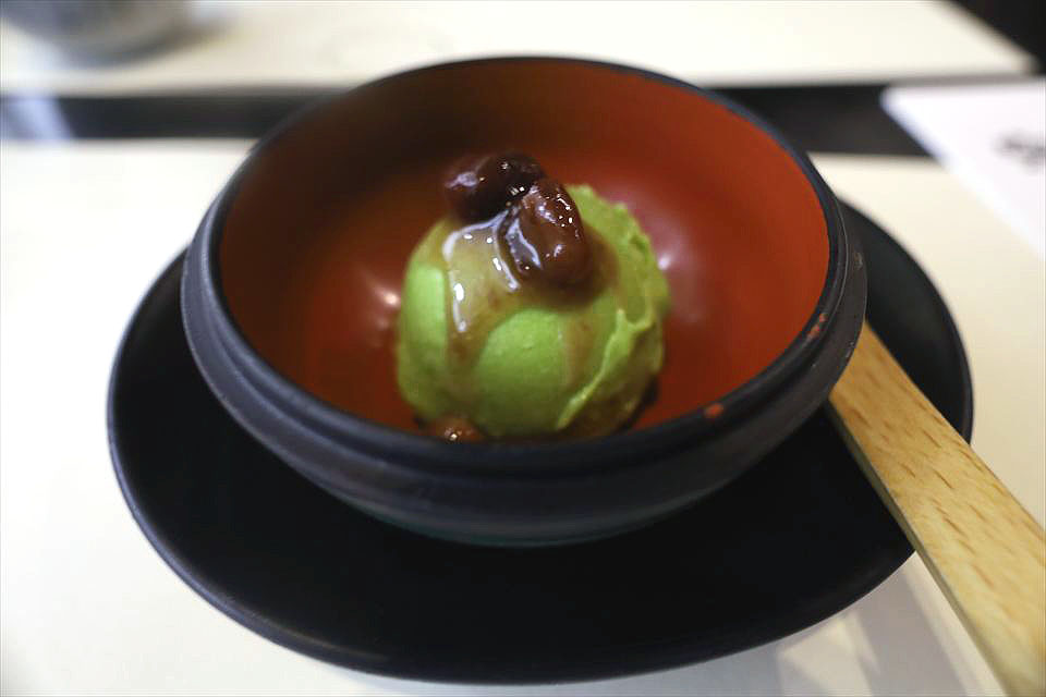 コースのデザートはシャーベットか抹茶アイスが選べるねん。