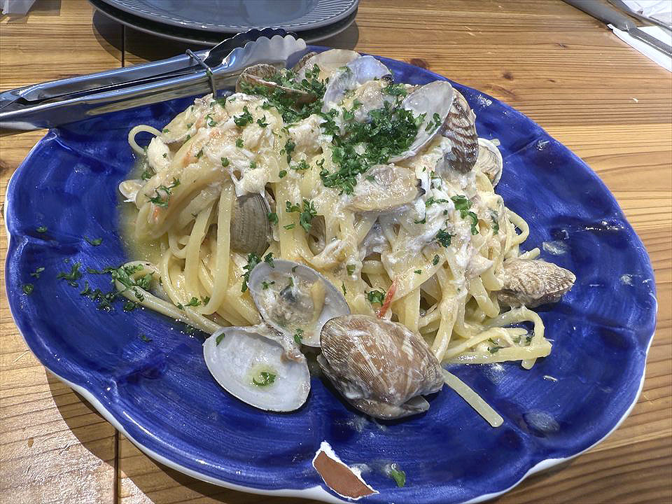 あさりや蟹身の海鮮の旨味がパスタに絡んで美味い!