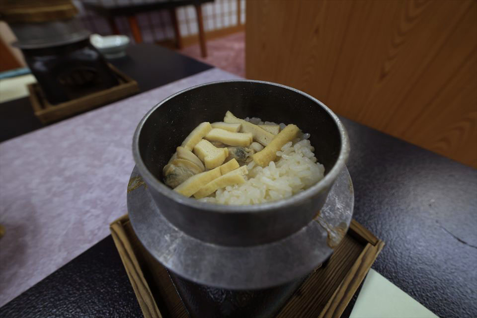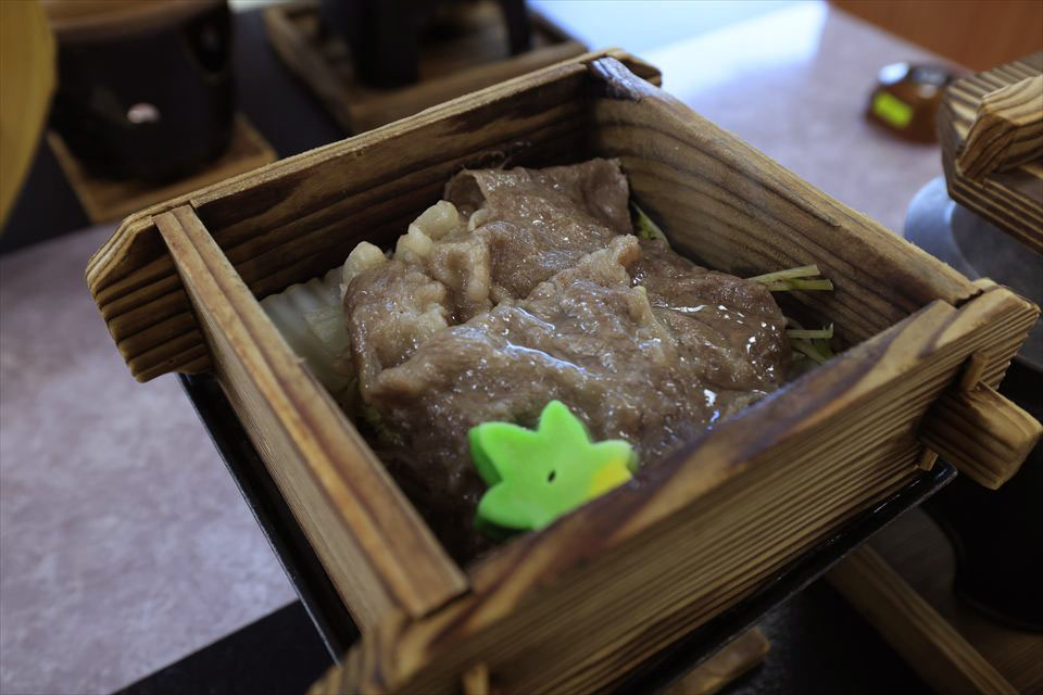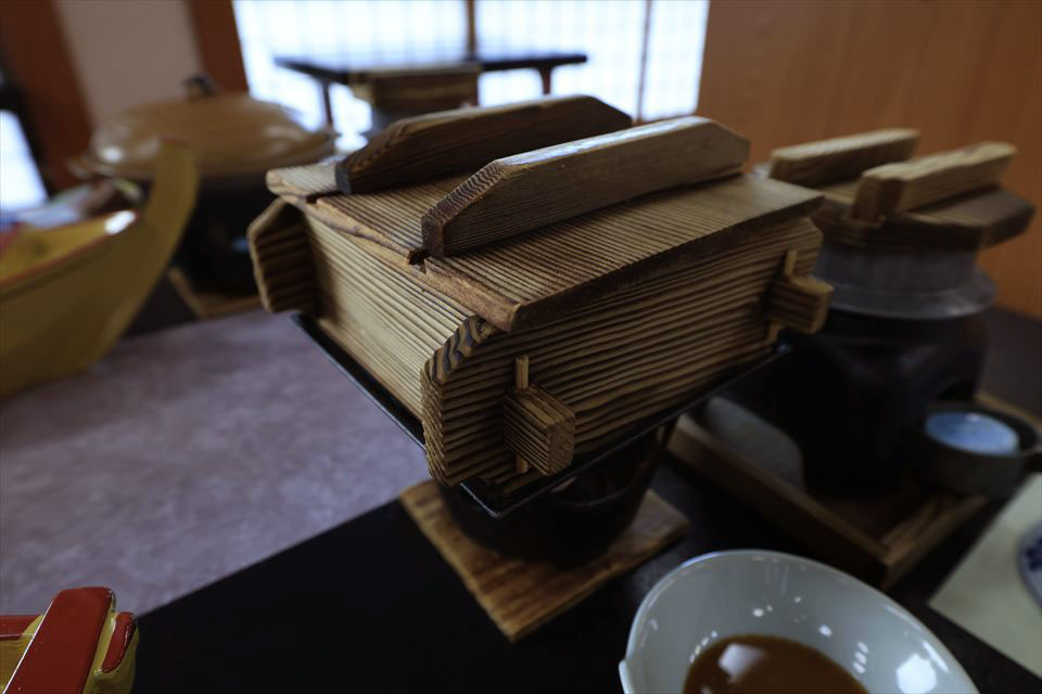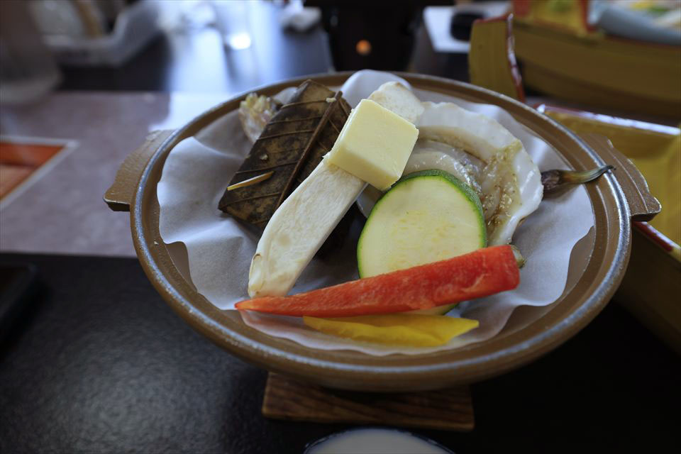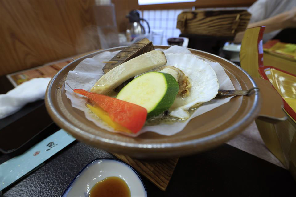 朴葉焼きは白身魚と里芋で、葉っぱのええ香りが