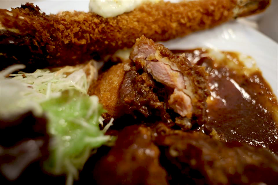 大きいエビフライはプリプリ、チキンカツも肉がジューシーで美味いなっ。