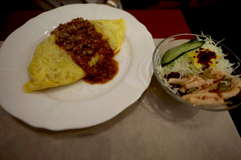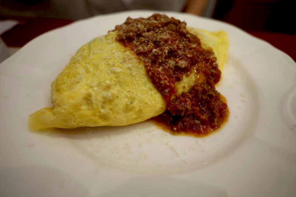 黒毛和牛のミートソースがかかったオムライスやねん。