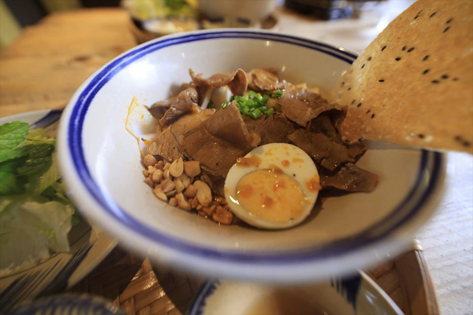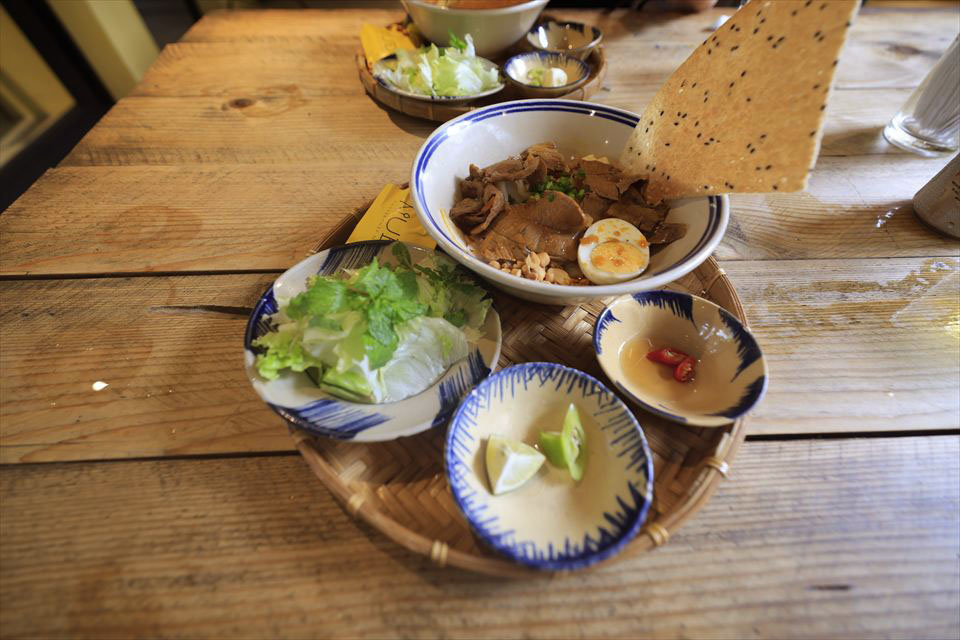 ベトナムのお醤油ベースのタレで太い麺にしっかり