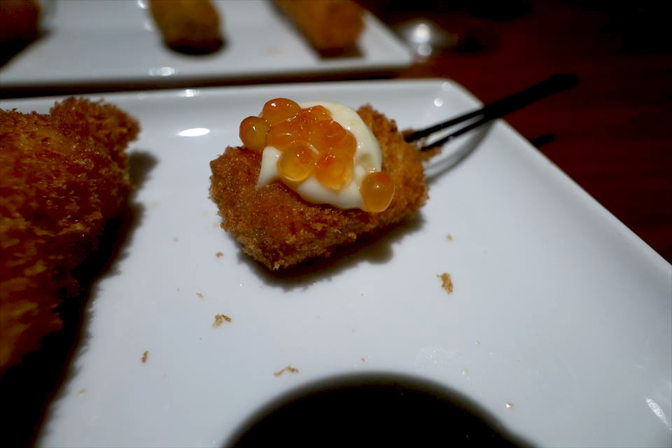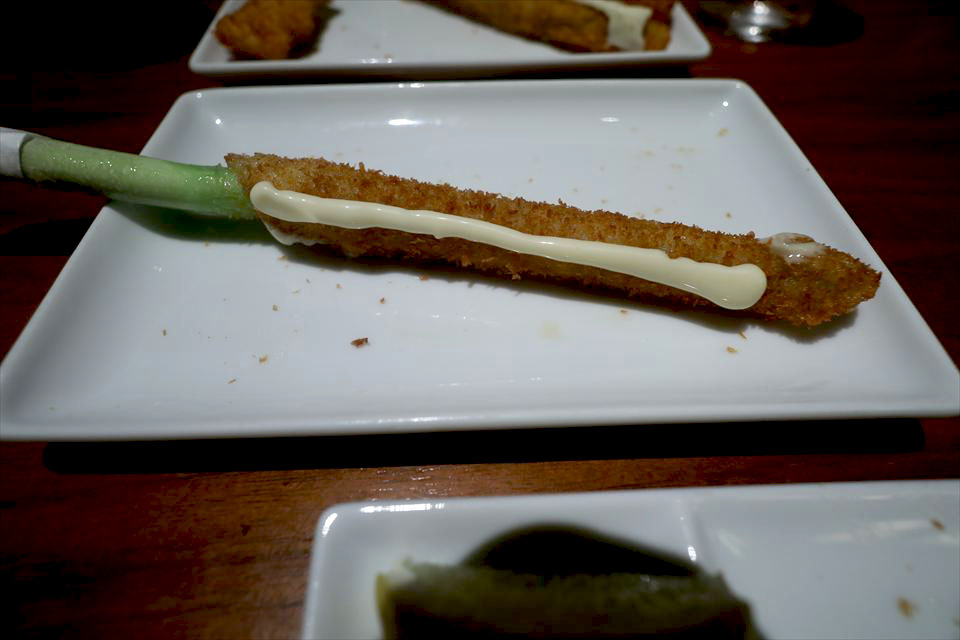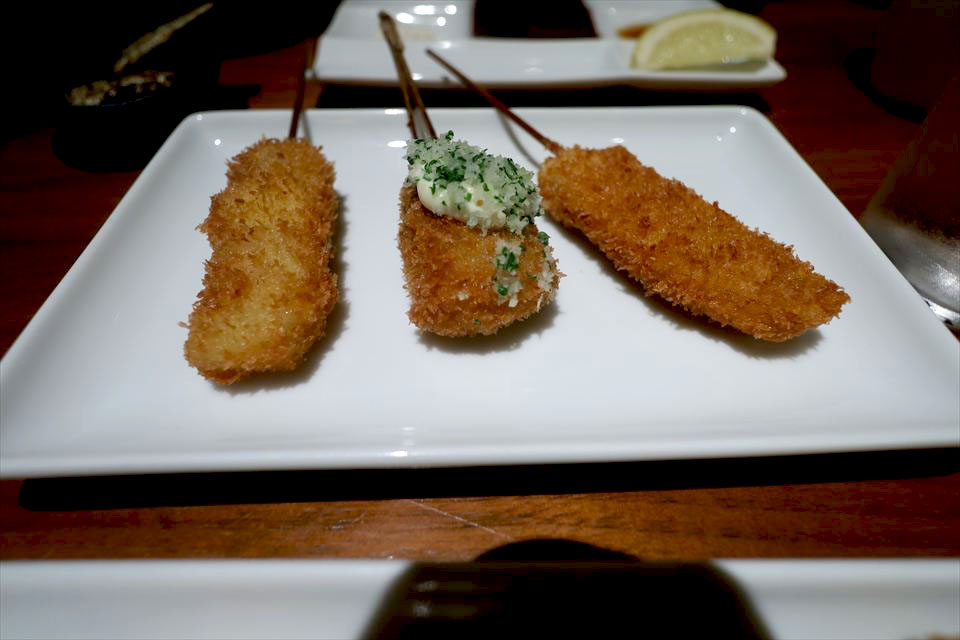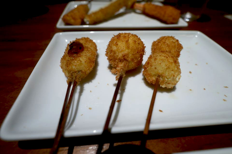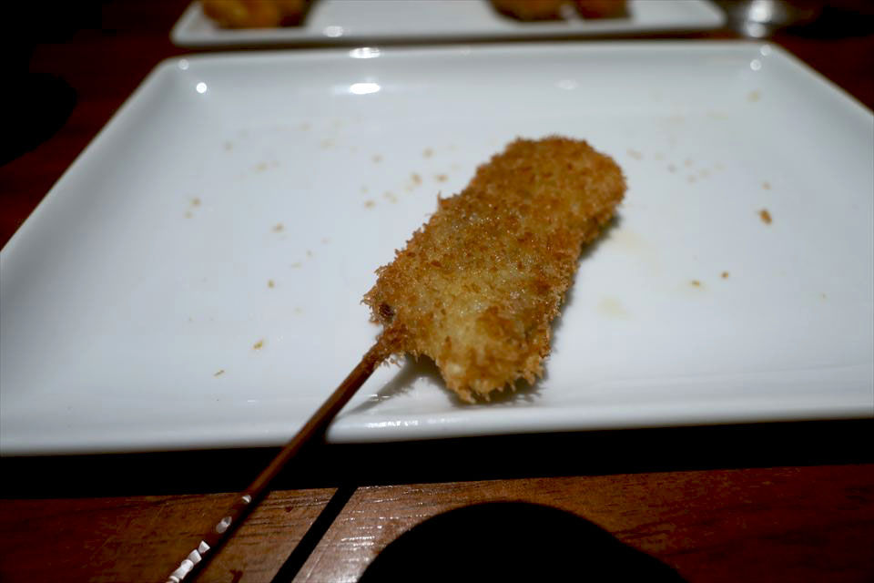 牛ヒレの串カツは贅沢な一品。
