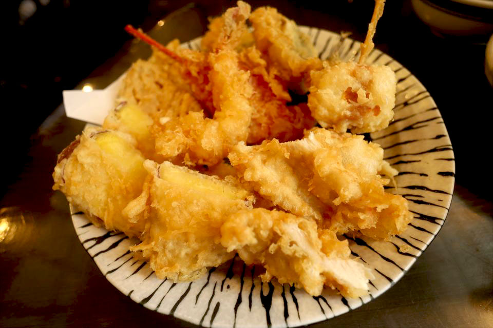皿に盛り盛りの天ぷらがテンション上がる~。