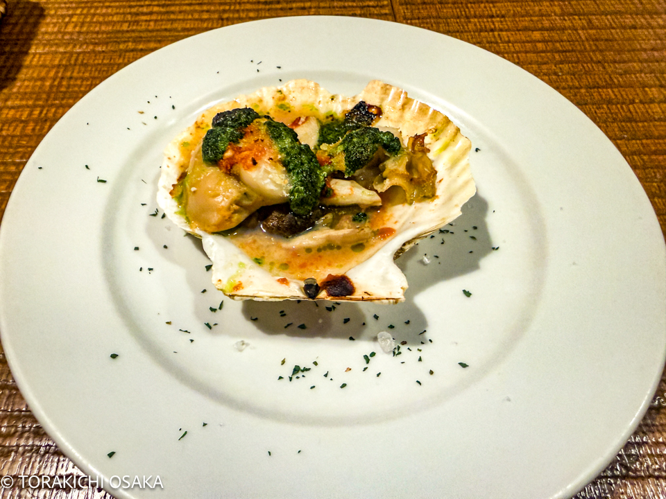 帆立に絡みつくガーリックバターが美味い!