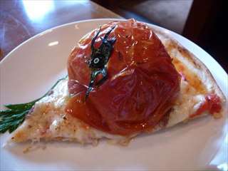 一切れのピッツアに、まるごとトマトのせたった(笑)