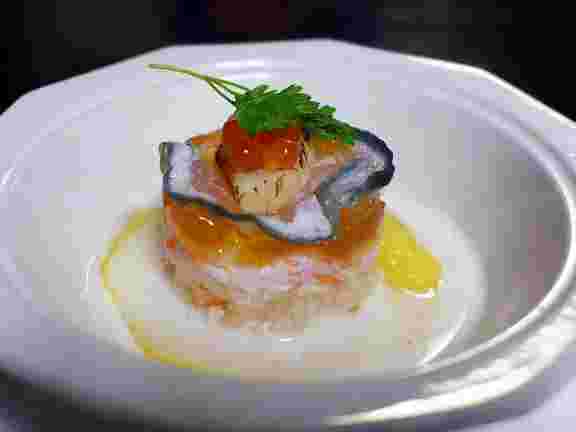 酢の味が美味しいねん。鮭と蟹身のええ旨味がでてるわぁ。